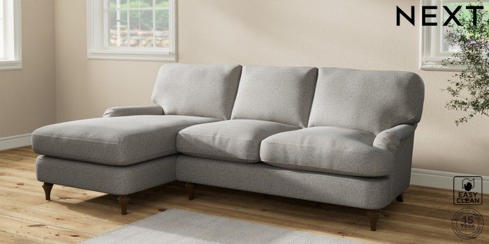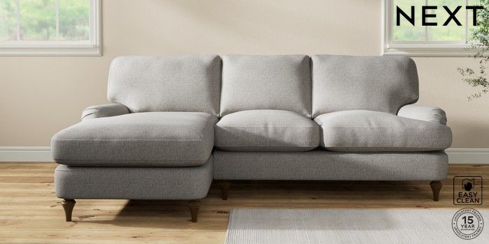 7.2.10 Sadie Deep Relaxed Sit Medium Sofa Chaise - Left Hand Woven Chenille Easy Clean Light Grey High Slim Turned - Mid | Made Click here to use our website with more accessibility support, for example screen readers