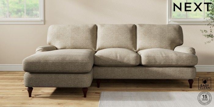 7.2.10 Sadie Deep Relaxed Sit Medium Sofa Chaise - Left Hand Woven Chenille Easy Clean Mid Natural High Slim Turned - Dark Brown | Made Click here to use our website with more accessibility support, for example screen readers