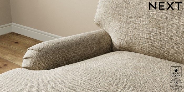 7.2.10 Sadie Deep Relaxed Sit Medium Sofa Chaise - Left Hand Woven Chenille Easy Clean Mid Natural High Slim Turned - Mid | Made Click here to use our website with more accessibility support, for example screen readers