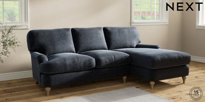 7.2.10 Sadie Deep Relaxed Sit Medium Sofa Chaise - Right Hand Boucle Chenille Dark Slate Blue High Slim Turned - Light | Made Click here to use our website with more accessibility support, for example screen readers