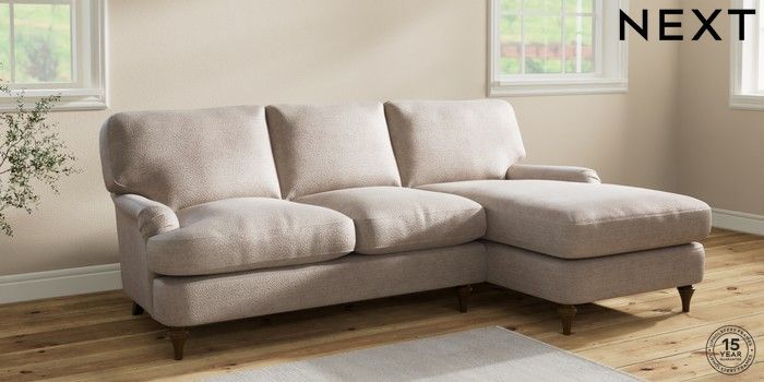 7.2.10 Sadie Deep Relaxed Sit Medium Sofa Chaise - Right Hand Boucle Chenille Light Natural High Slim Turned - Mid | Made Click here to use our website with more accessibility support, for example screen readers