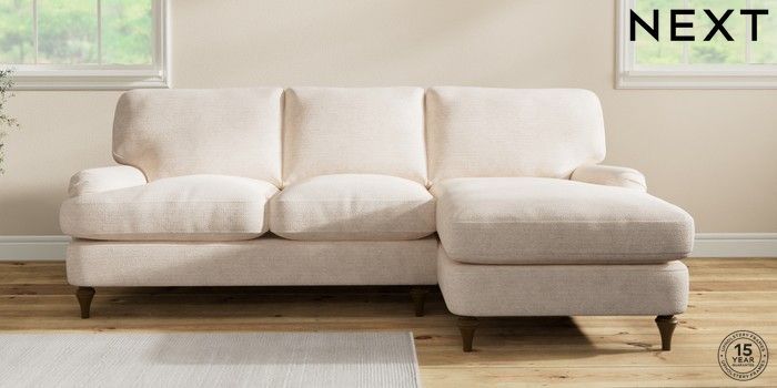 7.2.10 Sadie Deep Relaxed Sit Medium Sofa Chaise - Right Hand Boucle Chenille Oyster High Slim Turned - Mid | Made Click here to use our website with more accessibility support, for example screen readers