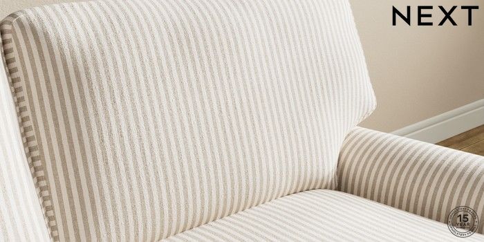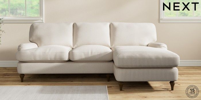 7.2.10 Sadie Deep Relaxed Sit Medium Sofa Chaise - Right Hand Chenille Stripe Natural High Slim Turned - Mid | Made Click here to use our website with more accessibility support, for example screen readers