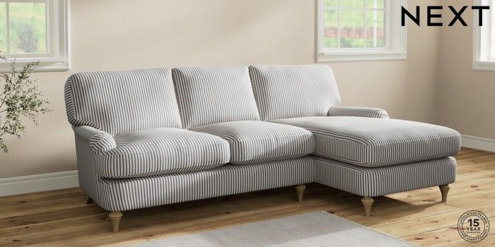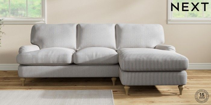 7.2.10 Sadie Deep Relaxed Sit Medium Sofa Chaise - Right Hand Chenille Stripe Slate Blue High Slim Turned - Light | Made Click here to use our website with more accessibility support, for example screen readers