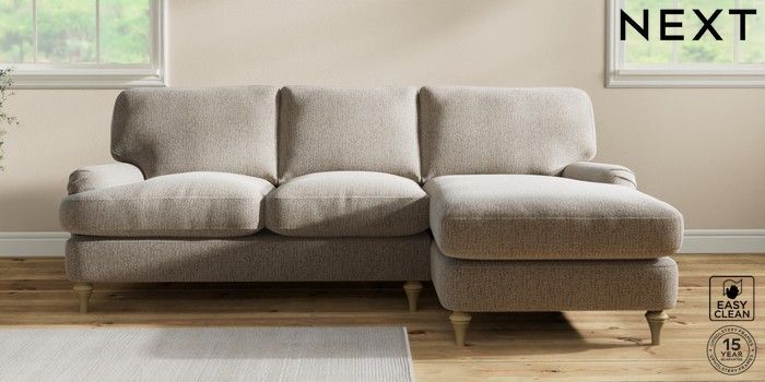 7.2.10 Sadie Deep Relaxed Sit Medium Sofa Chaise - Right Hand Chunky Boucle Easy Clean Dove High Slim Turned - Light | Made Click here to use our website with more accessibility support, for example screen readers