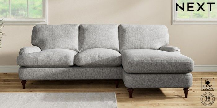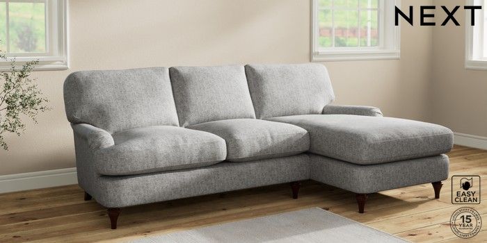 7.2.10 Sadie Deep Relaxed Sit Medium Sofa Chaise - Right Hand Chunky Boucle Easy Clean Light Grey High Slim Turned - Dark Brown | Made Click here to use our website with more accessibility support, for example screen readers
