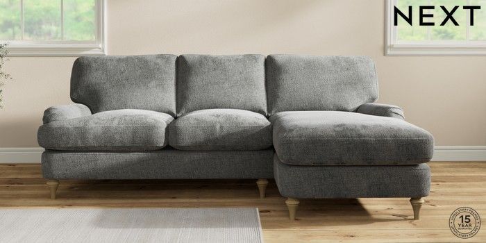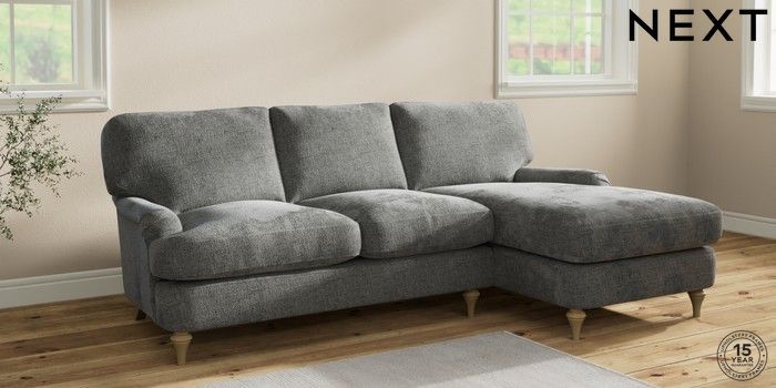 7.2.10 Sadie Deep Relaxed Sit Medium Sofa Chaise - Right Hand Chunky Chenille Dark Grey High Slim Turned - Light | Made Click here to use our website with more accessibility support, for example screen readers