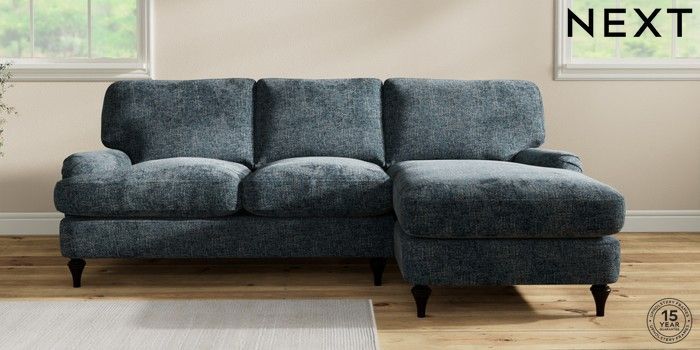 7.2.10 Sadie Deep Relaxed Sit Medium Sofa Chaise - Right Hand Chunky Chenille Dark Navy Blue High Slim Turned - Dark | Made Click here to use our website with more accessibility support, for example screen readers