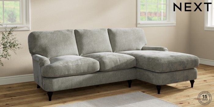 7.2.10 Sadie Deep Relaxed Sit Medium Sofa Chaise - Right Hand Chunky Chenille Light Grey High Slim Turned - Dark | Made Click here to use our website with more accessibility support, for example screen readers