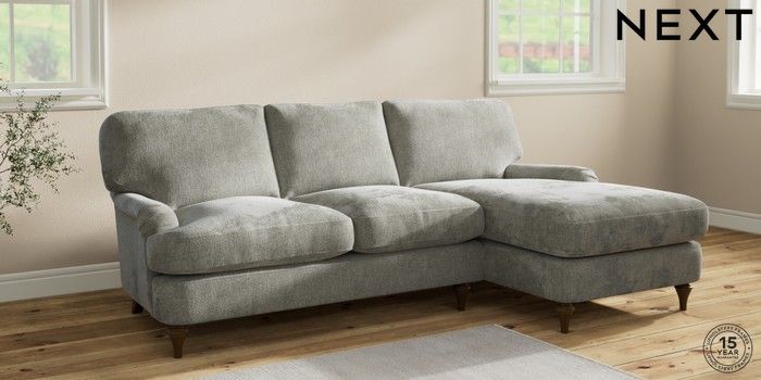 7.2.10 Sadie Deep Relaxed Sit Medium Sofa Chaise - Right Hand Chunky Chenille Light Grey High Slim Turned - Mid | Made Click here to use our website with more accessibility support, for example screen readers