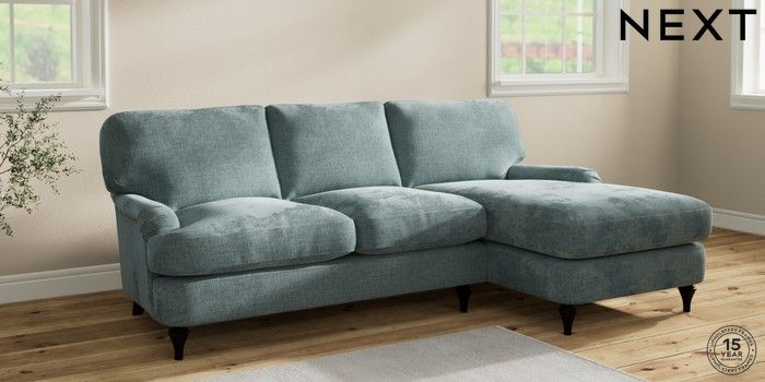7.2.10 Sadie Deep Relaxed Sit Medium Sofa Chaise - Right Hand Chunky Chenille Light Teal Green High Slim Turned - Dark | Made Click here to use our website with more accessibility support, for example screen readers