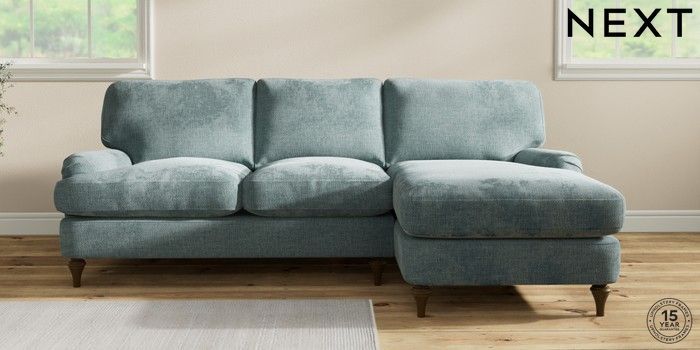 7.2.10 Sadie Deep Relaxed Sit Medium Sofa Chaise - Right Hand Chunky Chenille Light Teal Green High Slim Turned - Mid | Made Click here to use our website with more accessibility support, for example screen readers