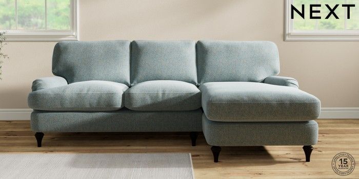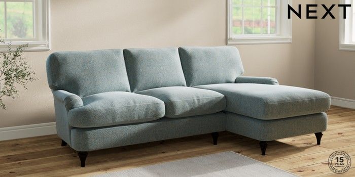 7.2.10 Sadie Deep Relaxed Sit Medium Sofa Chaise - Right Hand Chunky Marl Mid Blue High Slim Turned - Dark | Made Click here to use our website with more accessibility support, for example screen readers