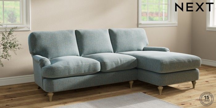 7.2.10 Sadie Deep Relaxed Sit Medium Sofa Chaise - Right Hand Chunky Marl Mid Blue High Slim Turned - Light | Made Click here to use our website with more accessibility support, for example screen readers
