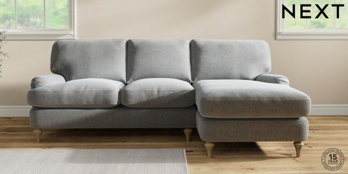 7.2.10 Sadie Deep Relaxed Sit Medium Sofa Chaise - Right Hand Chunky Marl Mid Grey High Slim Turned - Light | Made Click here to use our website with more accessibility support, for example screen readers