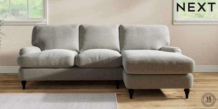 7.2.10 Sadie Deep Relaxed Sit Medium Sofa Chaise - Right Hand Chunky Texture Dove High Slim Turned - Dark | Made Click here to use our website with more accessibility support, for example screen readers
