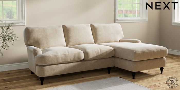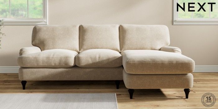 7.2.10 Sadie Deep Relaxed Sit Medium Sofa Chaise - Right Hand Chunky Weave Cream High Slim Turned - Dark | Made Click here to use our website with more accessibility support, for example screen readers