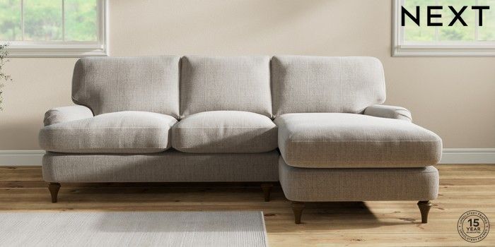 7.2.10 Sadie Deep Relaxed Sit Medium Sofa Chaise - Right Hand Chunky Weave Dove Grey High Slim Turned - Mid | Made Click here to use our website with more accessibility support, for example screen readers