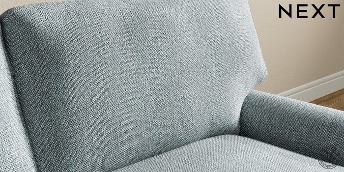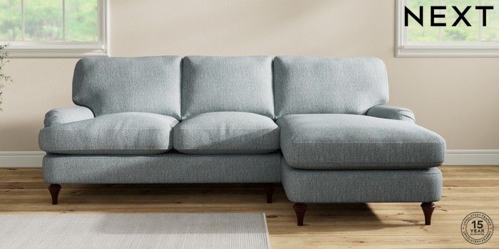 7.2.10 Sadie Deep Relaxed Sit Medium Sofa Chaise - Right Hand Chunky Weave Mid Blue High Slim Turned - Dark Brown | Made Click here to use our website with more accessibility support, for example screen readers