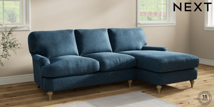 7.2.10 Sadie Deep Relaxed Sit Medium Sofa Chaise - Right Hand Cotswold Chenille Dark Blue High Slim Turned - Light | Made Click here to use our website with more accessibility support, for example screen readers
