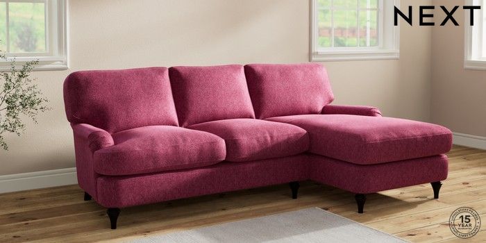 7.2.10 Sadie Deep Relaxed Sit Medium Sofa Chaise - Right Hand Cotswold Chenille Dark Raspberry Pink High Slim Turned - Dark | Made Click here to use our website with more accessibility support, for example screen readers