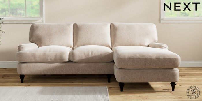 7.2.10 Sadie Deep Relaxed Sit Medium Sofa Chaise - Right Hand Cotswold Chenille Light Natural High Slim Turned - Dark | Made Click here to use our website with more accessibility support, for example screen readers