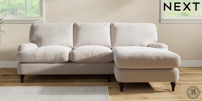 7.2.10 Sadie Deep Relaxed Sit Medium Sofa Chaise - Right Hand Cotswold Chenille Oyster High Slim Turned - Dark Brown | Made Click here to use our website with more accessibility support, for example screen readers