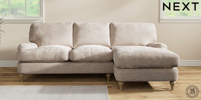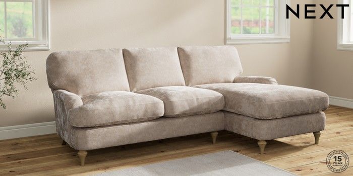 7.2.10 Sadie Deep Relaxed Sit Medium Sofa Chaise - Right Hand Distressed Velour Mid Natural High Slim Turned - Light | Made Click here to use our website with more accessibility support, for example screen readers
