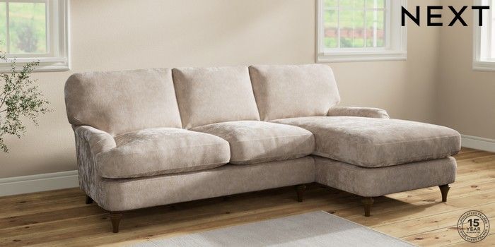 7.2.10 Sadie Deep Relaxed Sit Medium Sofa Chaise - Right Hand Distressed Velour Mid Natural High Slim Turned - Mid | Made Click here to use our website with more accessibility support, for example screen readers