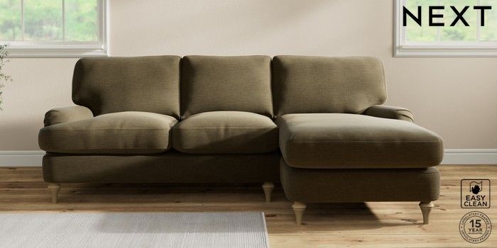 7.2.10 Sadie Deep Relaxed Sit Medium Sofa Chaise - Right Hand Fine Chenille Easy Clean Dark Moss Green High Slim Turned - Light | Made Click here to use our website with more accessibility support, for example screen readers