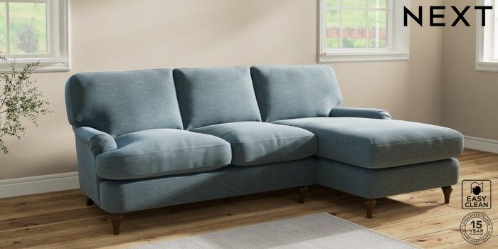 7.2.10 Sadie Deep Relaxed Sit Medium Sofa Chaise - Right Hand Fine Chenille Easy Clean Mid Blue High Slim Turned - Mid | Made Click here to use our website with more accessibility support, for example screen readers