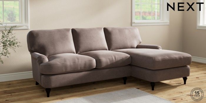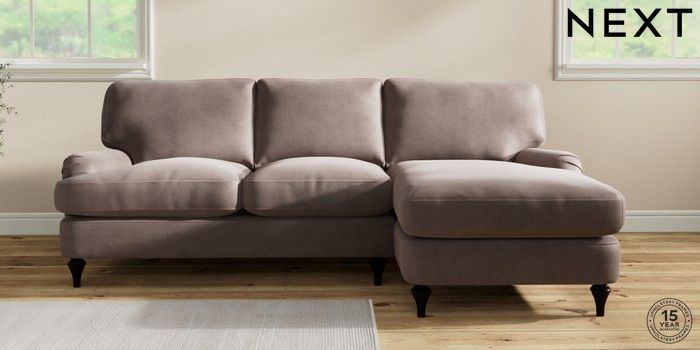 7.2.10 Sadie Deep Relaxed Sit Medium Sofa Chaise - Right Hand Luxe Chenille Mink Brown High Slim Turned - Dark | Made Click here to use our website with more accessibility support, for example screen readers
