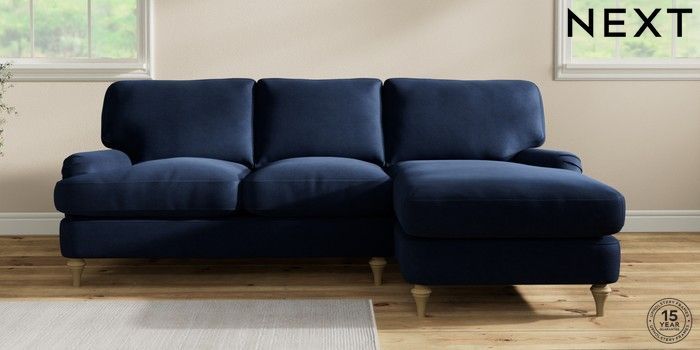 7.2.10 Sadie Deep Relaxed Sit Medium Sofa Chaise - Right Hand Luxe Chenille Navy Blue High Slim Turned - Light | Made Click here to use our website with more accessibility support, for example screen readers