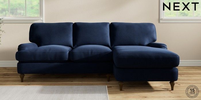 7.2.10 Sadie Deep Relaxed Sit Medium Sofa Chaise - Right Hand Luxe Chenille Navy Blue High Slim Turned - Mid | Made Click here to use our website with more accessibility support, for example screen readers