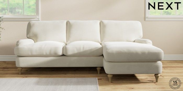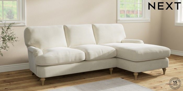 7.2.10 Sadie Deep Relaxed Sit Medium Sofa Chaise - Right Hand Luxe Chenille Oyster High Slim Turned - Light | Made Click here to use our website with more accessibility support, for example screen readers