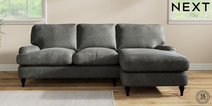 7.2.10 Sadie Deep Relaxed Sit Medium Sofa Chaise - Right Hand Plush Chenille Dark Grey High Slim Turned - Dark | Made Click here to use our website with more accessibility support, for example screen readers