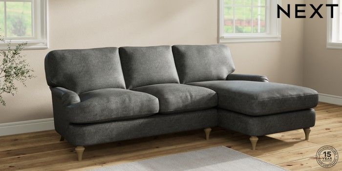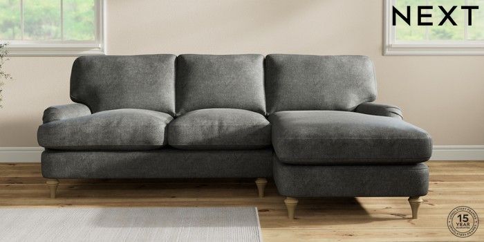 7.2.10 Sadie Deep Relaxed Sit Medium Sofa Chaise - Right Hand Plush Chenille Dark Grey High Slim Turned - Light | Made Click here to use our website with more accessibility support, for example screen readers