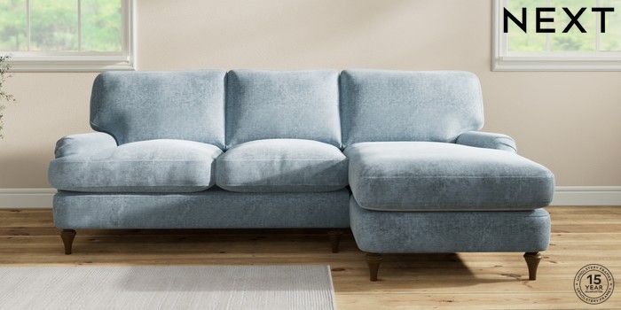 7.2.10 Sadie Deep Relaxed Sit Medium Sofa Chaise - Right Hand Plush Chenille Light Blue High Slim Turned - Mid | Made Click here to use our website with more accessibility support, for example screen readers