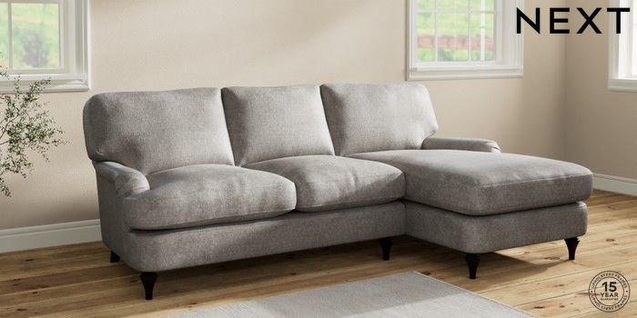 7.2.10 Sadie Deep Relaxed Sit Medium Sofa Chaise - Right Hand Plush Chenille Light Grey High Slim Turned - Dark | Made Click here to use our website with more accessibility support, for example screen readers