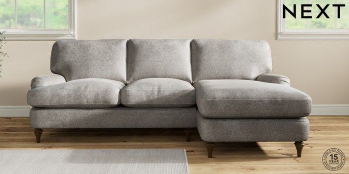 7.2.10 Sadie Deep Relaxed Sit Medium Sofa Chaise - Right Hand Plush Chenille Light Grey High Slim Turned - Mid | Made Click here to use our website with more accessibility support, for example screen readers