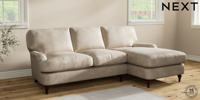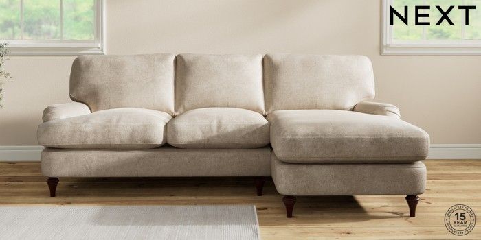 7.2.10 Sadie Deep Relaxed Sit Medium Sofa Chaise - Right Hand Plush Chenille Light Natural High Slim Turned - Dark Brown | Made Click here to use our website with more accessibility support, for example screen readers