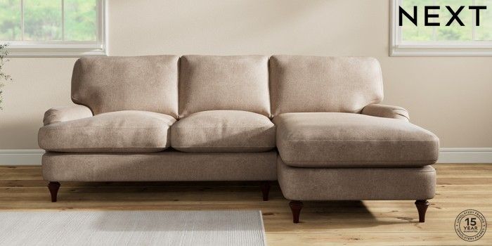 7.2.10 Sadie Deep Relaxed Sit Medium Sofa Chaise - Right Hand Plush Chenille Mid Natural High Slim Turned - Dark Brown | Made Click here to use our website with more accessibility support, for example screen readers