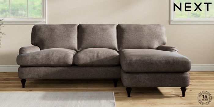 7.2.10 Sadie Deep Relaxed Sit Medium Sofa Chaise - Right Hand Plush Chenille Mink Brown High Slim Turned - Dark | Made Click here to use our website with more accessibility support, for example screen readers