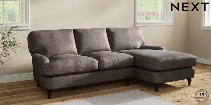7.2.10 Sadie Deep Relaxed Sit Medium Sofa Chaise - Right Hand Plush Chenille Mink Brown High Slim Turned - Dark Brown | Made Click here to use our website with more accessibility support, for example screen readers