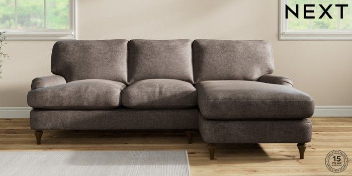 7.2.10 Sadie Deep Relaxed Sit Medium Sofa Chaise - Right Hand Plush Chenille Mink Brown High Slim Turned - Mid | Made Click here to use our website with more accessibility support, for example screen readers