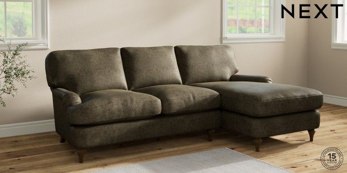 7.2.10 Sadie Deep Relaxed Sit Medium Sofa Chaise - Right Hand Plush Chenille Moss Green High Slim Turned - Mid | Made Click here to use our website with more accessibility support, for example screen readers