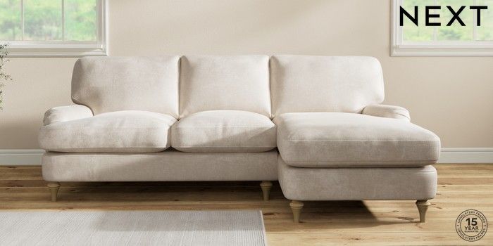 7.2.10 Sadie Deep Relaxed Sit Medium Sofa Chaise - Right Hand Plush Chenille Oyster High Slim Turned - Light | Made Click here to use our website with more accessibility support, for example screen readers