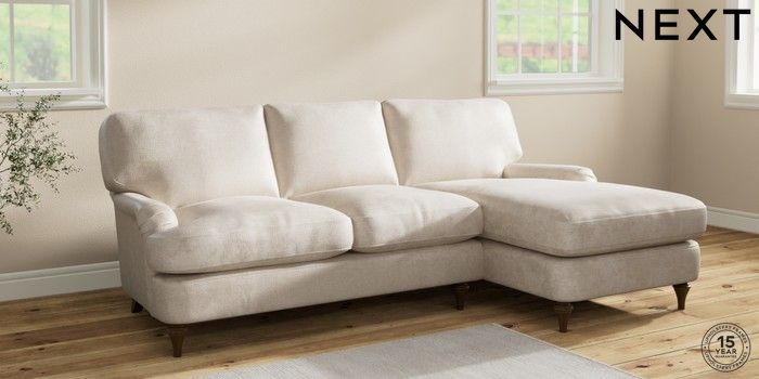 7.2.10 Sadie Deep Relaxed Sit Medium Sofa Chaise - Right Hand Plush Chenille Oyster High Slim Turned - Mid | Made Click here to use our website with more accessibility support, for example screen readers
