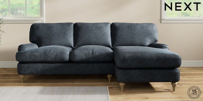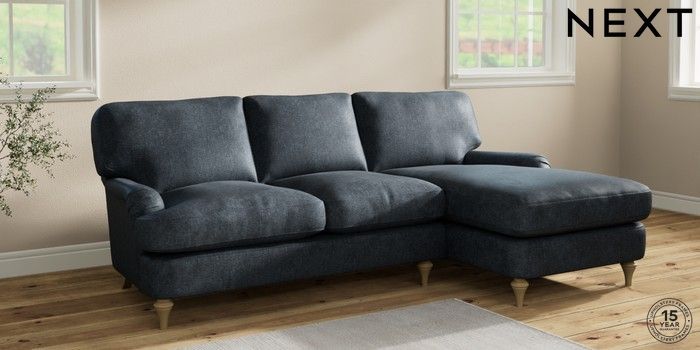 7.2.10 Sadie Deep Relaxed Sit Medium Sofa Chaise - Right Hand Plush Chenille Slate Blue High Slim Turned - Light | Made Click here to use our website with more accessibility support, for example screen readers