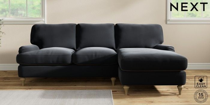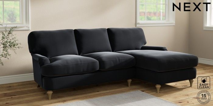 7.2.10 Sadie Deep Relaxed Sit Medium Sofa Chaise - Right Hand Plush Velvet Easy Clean Charcoal Grey High Slim Turned - Light | Made Click here to use our website with more accessibility support, for example screen readers
